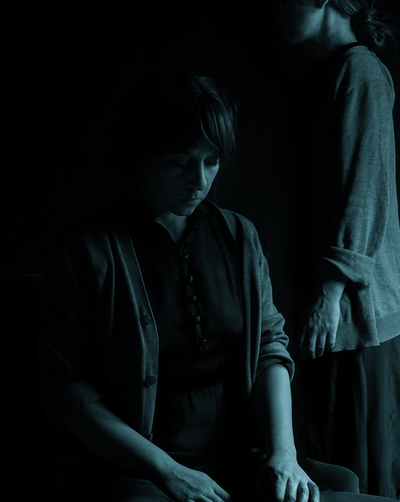 (Cold, empty indifference. Perhaps also untouchability. Walls. Everything locked up in this house, a world outside does not exist. Everything only mirrors each other again and again. Coldness mirrors coldness… and mirrors emptiness mirrors emptiness…There is no way out, but it is also not sought.)