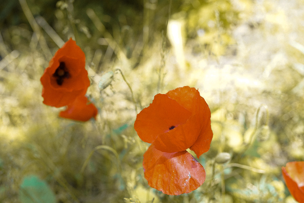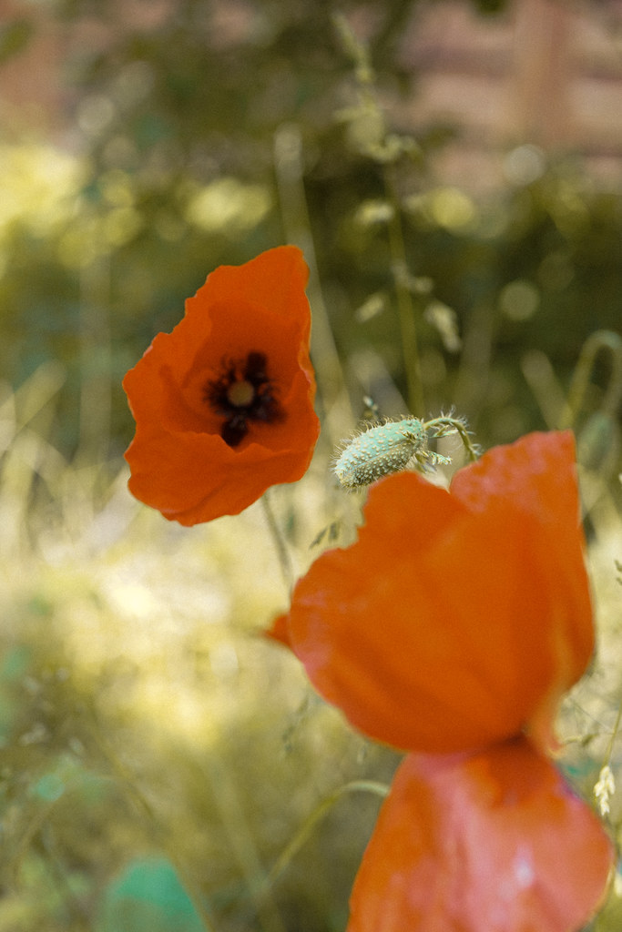 Ich hab’ mir eingebildet, unbedingt noch irgendwas mit dem Mohn machen zu müssen, bevor er verblüht ist. Von den Ergebnissen bin ich jetzt eigentlich nicht allzu begeistert – weil ich im Grunde gar keine Ahnung hatte, was ich will? Weil ich mich einfach schrecklich schwer damit tue, draußen Bilder von mir zu machen und da zu viele Sachen sind, auf die man gleichzeitig achten muss? Weil in den Gärten drumrum überall Nachbarn waren und einfach die Ruhe gefehlt hat? Egal.